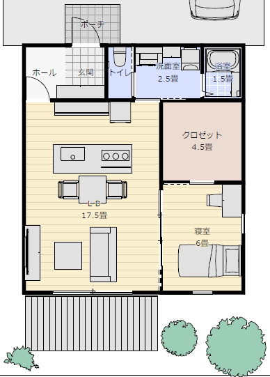 平屋間取り 一人暮らし 人気間取り 1年前 敷地の大きさ: 9.1M×16.4M 北道路 建物の規模: 18坪1LDK木造二階建て平屋間取り 必要な部屋: LDK17.5畳 寝室 6畳 ウォークインクロゼット 4.5畳 洗面脱衣室 2.5畳浴室 1.5畳トイレ 1畳 間取りの要望: 老後一人で住む平屋の間取り リビング広め寝室小さ目クロゼット広め 寝室はリビングに引き戸で開放できる アイランドキッチンフルフラット 並列駐車場 2台 家族構成: 夫婦子供二人