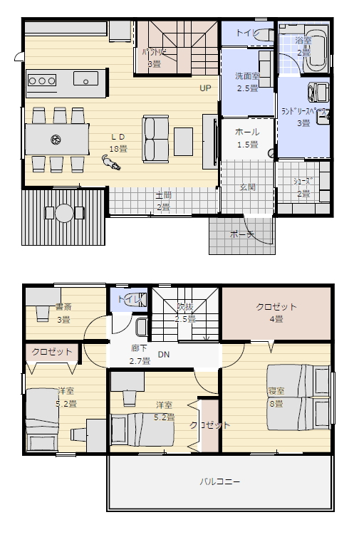 37坪4ldk木造2階建て